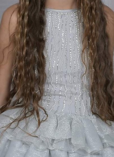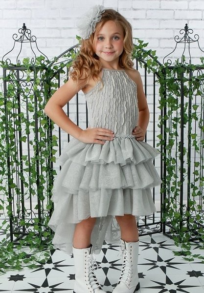 Ooh la la Couture, galajurkje rijk borduurt voor meisje, feestjurk hi-low zilvergrijs