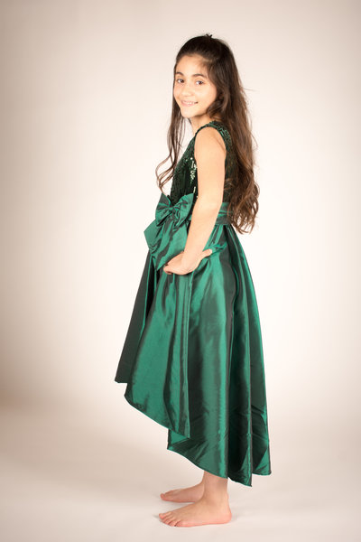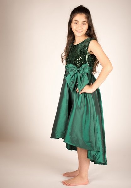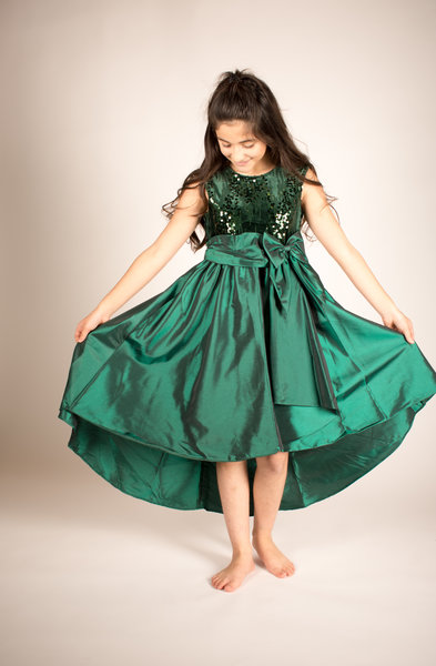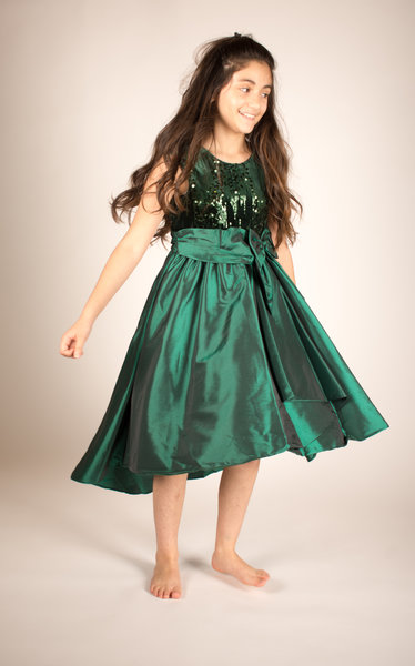 Bonnie Jean, donkergroen feestjurkje met pailletten