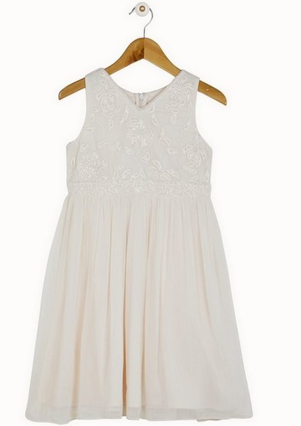 Derhy Kids, zacht lichtroze feestjurkje met borduurd lijfje