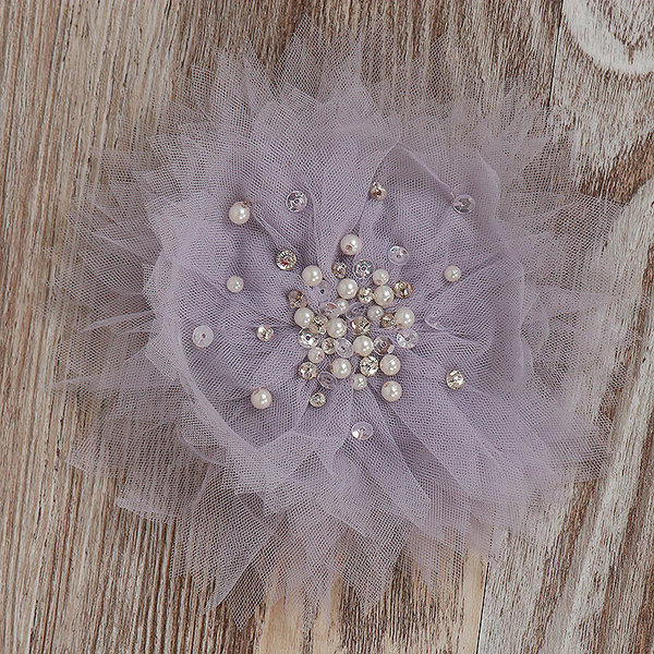 Ooh la la Couture, tule bloem voor in het haar met haarclip lila
