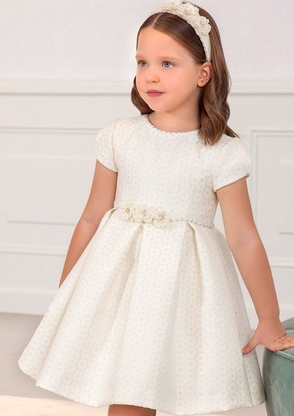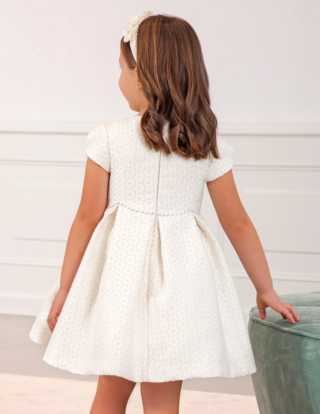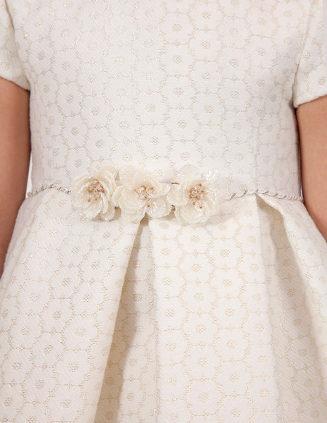 Abel e Lula, Abel & Lula, jacquard champagne jurkje met verwijderbare broche in taille, feestelijk jurkje in champagne kleur voor meisjes