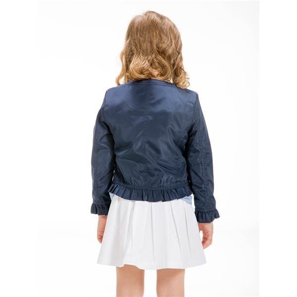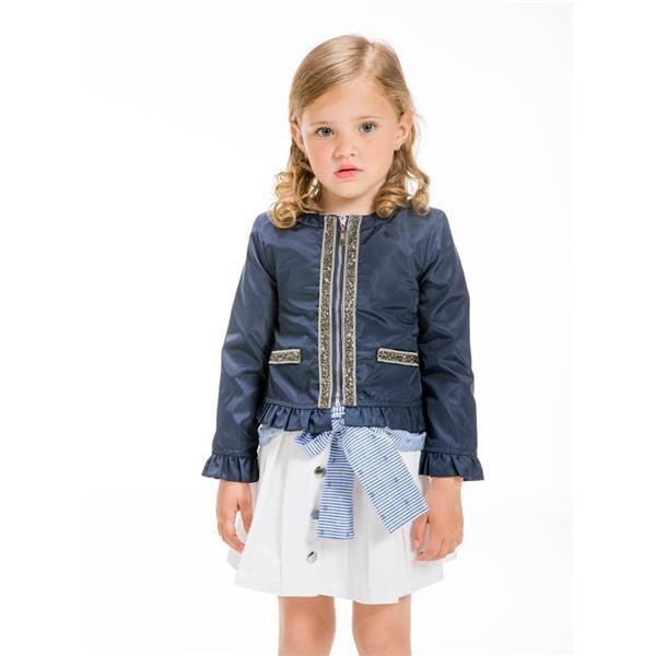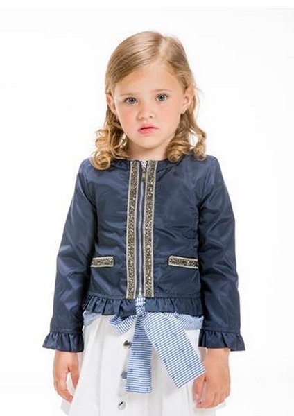 donkerblauw jasje met ruches en goud glitter bies, glitterjasje meisje