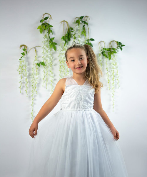Bonnie Jean jurk bruidsmeisje borduur wit VXX