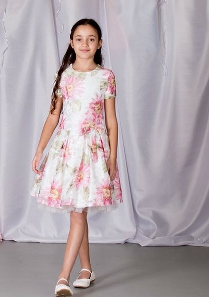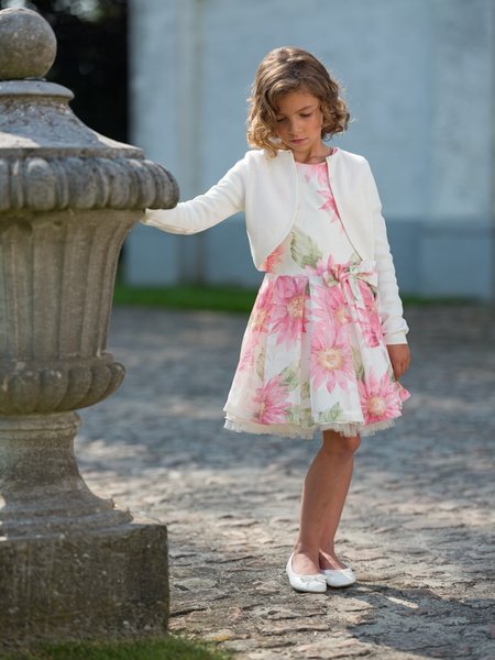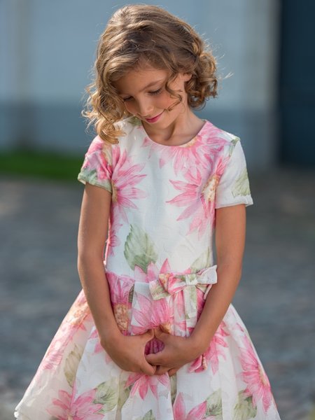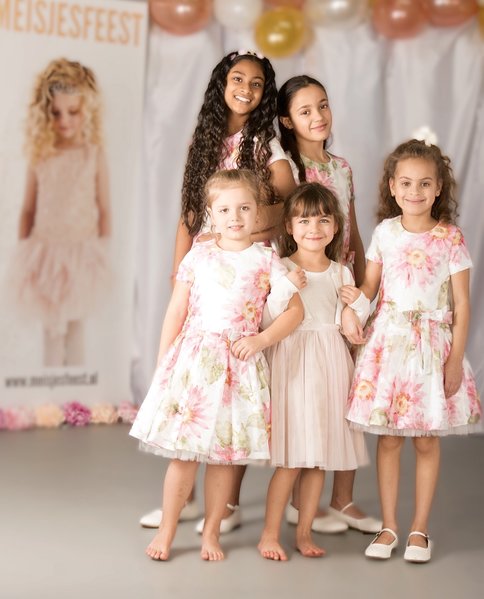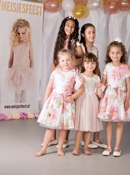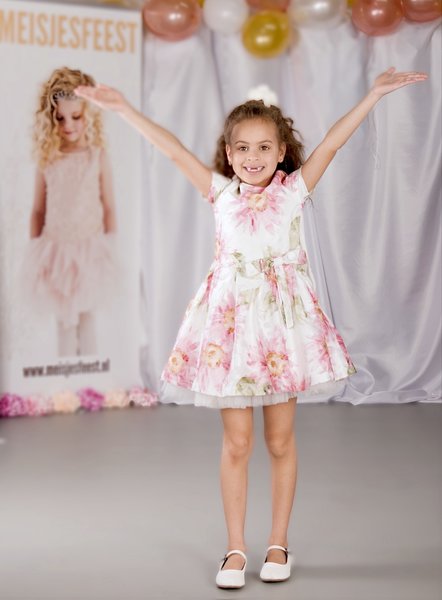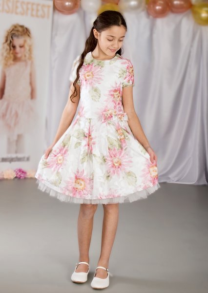 Gymp, feestjurk met roze bloemen,
