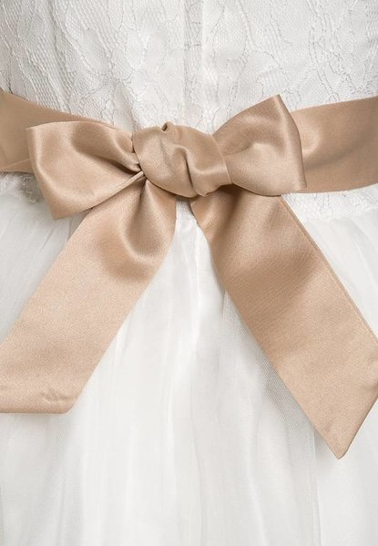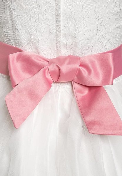 Happy Girls feestjurkje met drie verschillende strikceinturen inclusief, iedere kleur geeft een heel ander effect 1x wit met kant 1x roze en 1x beige