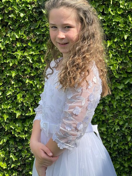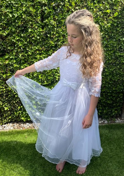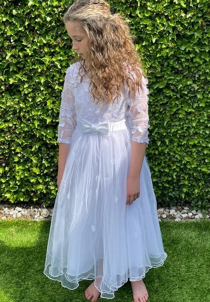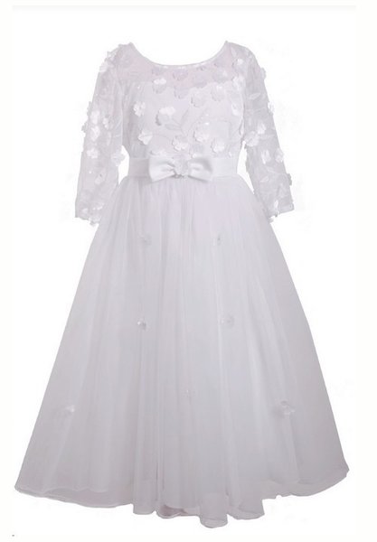 Bonnie Jean, witte jurk voor bruidsmeisje of communie, bruidskinderen, witte lange bruidsjurk
