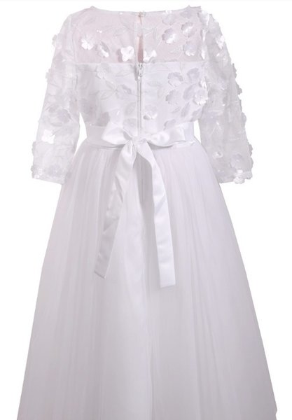 witte jurk voor bruidsmeisje of communie, bruidskinderen, witte lange bruidsjurk