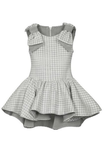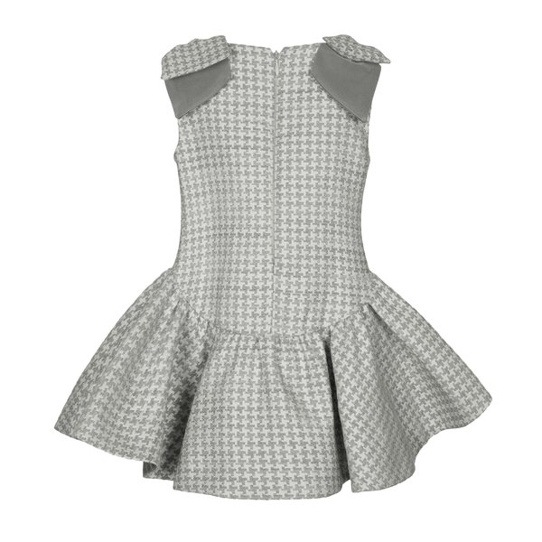 Lapin House, grijs geruit jurkje met hi-low zoom, feestelijk jurkje met strikken