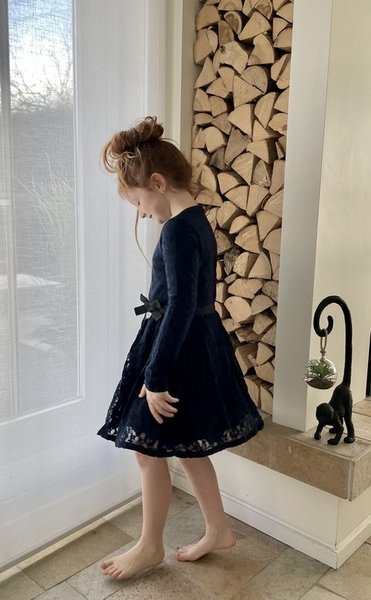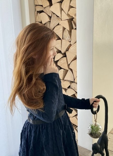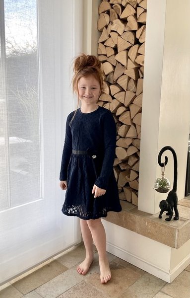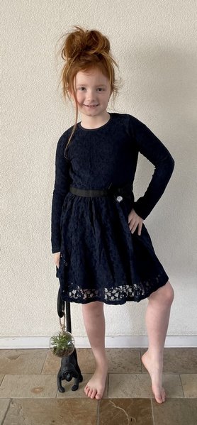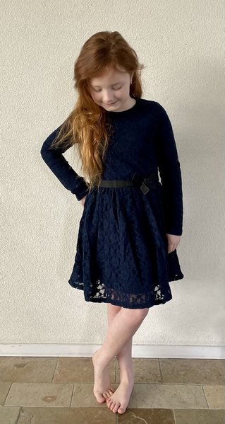 LoFff, donkerblauw jurkje van kant met lange mouwen