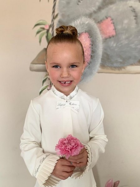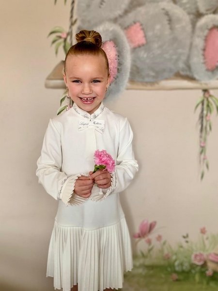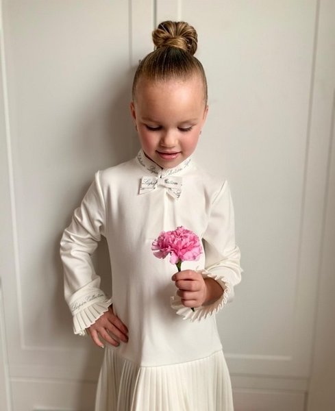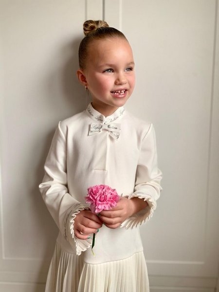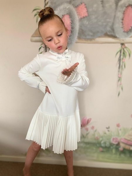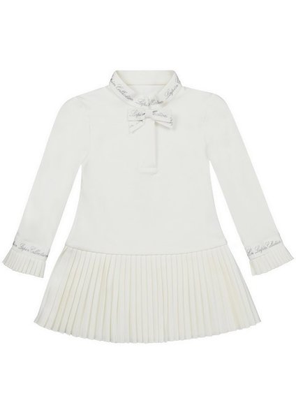 Lapin House, ivoor jurkje met geplooid rokje en zilver lapin house logo, ivoor feestjurkje