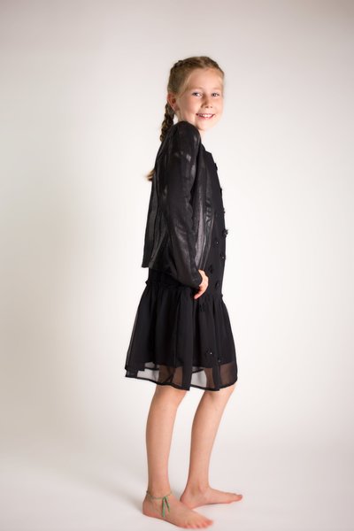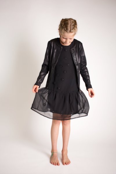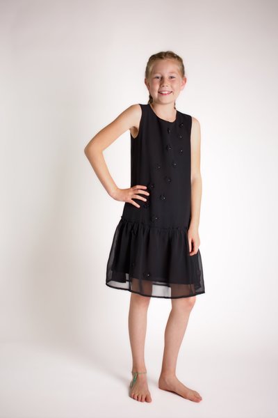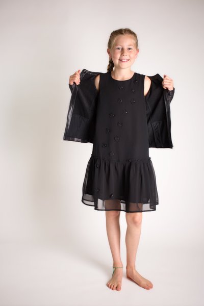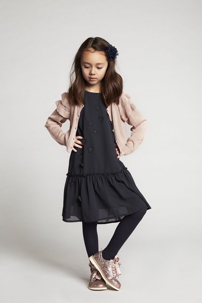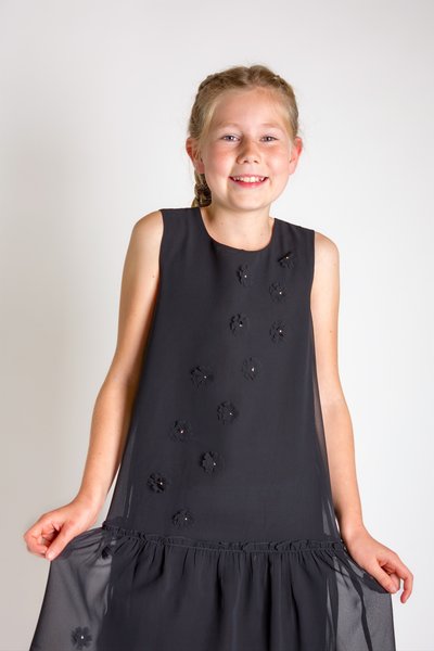 Creamie, zwarte feestjurkje met opgestikte bloemen