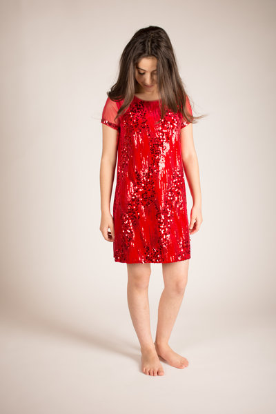 Link naar Vinted doe een bod → 116 (6) Bonnie Jean jurkje pailletten rood | Vinted