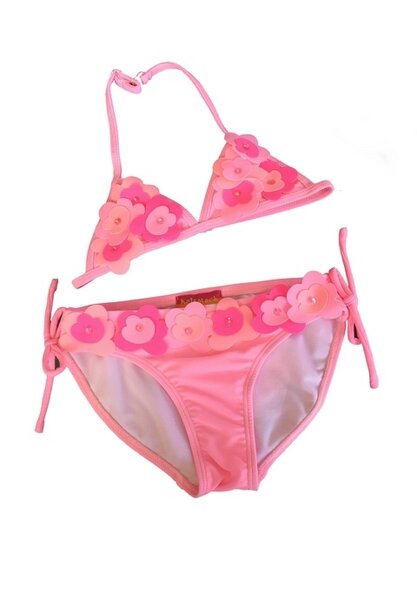 Link naar Vinted doe een bod → mt 110 bikini met 3D bloemen roze Kate Mack | Vinted