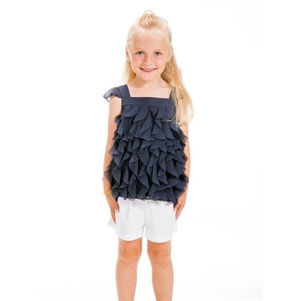 Link naar doe een bod → mt 104 top chiffon met ruches donkerblauw NIEUW | Vinted
