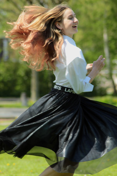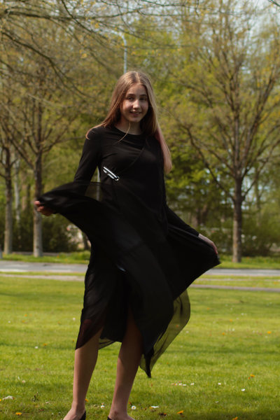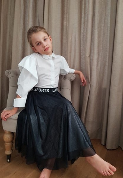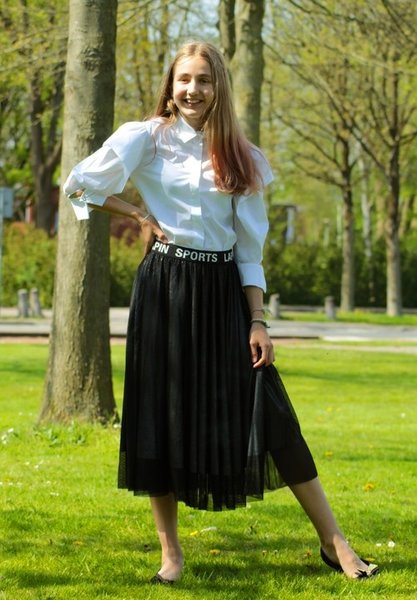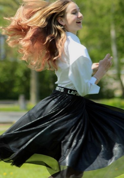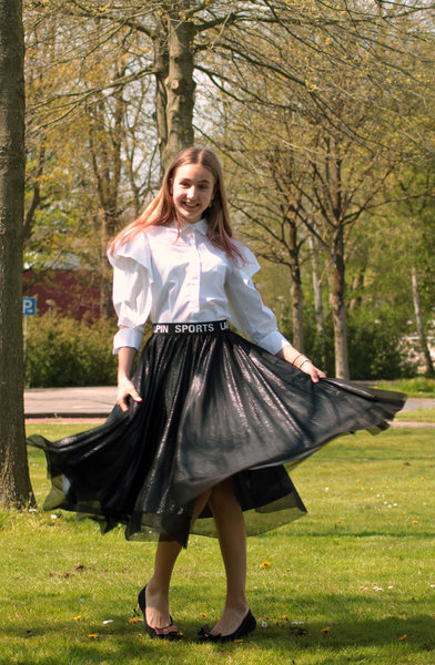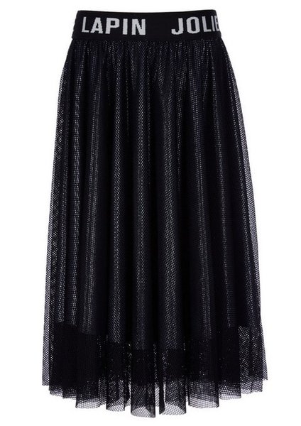 Lapin House, lange zwarte tule rok met zilveren voering en elastiek in taille